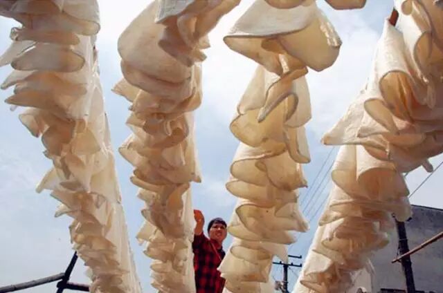 用指甲剥开蚕茧取出蚕蛹,并把蚕茧撑开套在手上,摘去蚕蛹和其黑色的褪皮(有的被子上会有小黑点就是这东东没有摘干净),叠至5-6层取下并轻轻拉成正方形的蚕丝小片,上等的双宫茧只要在手上拨5个左右就可以拉成一小块了。这个过程在干净的流动水中进行是最好的。一般年轻点的熟练工人一天可以剥5~6斤湿茧。