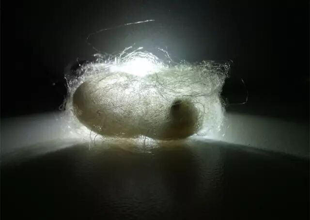 放入特殊的容器中煮,这个也是一个脱脂的过程,最后表层的大部分丝胶脱落,蚕丝的重量减少一半。脱脂之后蚕丝被不容易板结,可以做到免翻。